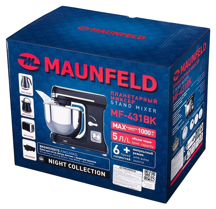 Планетарный миксер Maunfeld MF-431BK используется на предприятиях пищевой промышленности, общественного питания и торговли, а также в домашних условиях для замеса теста жидкой консистенции, в том числе белкового, заварного, дрожжевого, бисквитного, а также приготовления кремов и соусов. Модель оснащена электромеханической панелью управления. Корпус выполнен из стали и пластика с покрытием черного цвета, дежа и рабочие элементы насадок – из высококачественной нержавеющей стали с глянцевой поверхностью, упаковка – картонная коробка. В комлект поставки входят 3 сменные насадки: крюк для теста, лопатка для перемешивания и венчик для взбивания, инструкция по эксплуатации и гарантийный талон. Особенности: