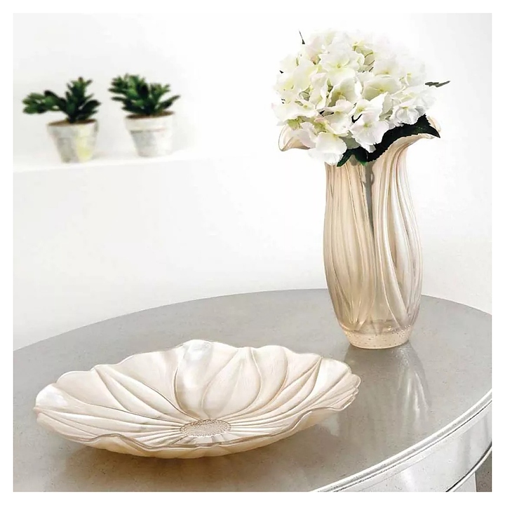 Сервировочное блюдо IVV 5334.3 предназначено для использования на предприятиях общественного питания и торговли, в частных домах и квартирах. Посуда изготавливается вручную из крепкого стекла с оригинальным декором из металлизированных красок, закрепленных блестящим гелем. Рекомендуется ручная мойка. Дополнительные характеристики: