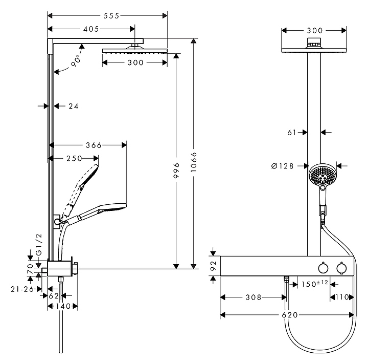 Комплект душевой термостат Hansgrohe Raindance E 27363000