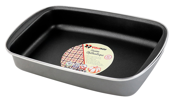 Прямоугольная форма Vitrinor Authentique Crystal 35 используется на предприятиях общественного питания и торговли, а также в домашних условиях для приготовления широкого спектра блюд в духовых шкафах и на любых типах варочных поверхностей, включая индукционные. Изделие выполнено из стали с двухслойным антипригарным покрытием, не содержащим PFOA, внешнее покрытие - двухслойная стеклоэмаль, обожженная при температуре 820 °С, цвета графит. Особенности: