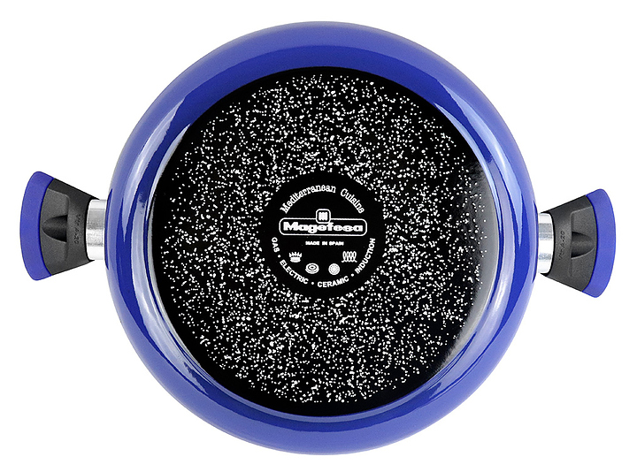 Низкая кастрюля Vitrinor Danubio 24 используется на предприятиях общественного питания и торговли, а также в домашних условиях для приготовления широкого спектра блюд на любых типах варочных поверхностей, включая индукционные. Модель оснащена стеклянной крышкой с ободком из нержавеющей стали и отверстием для выпуска пара. Изделие выполнено из стали c ферромагнитными свойствами с двухслойным антипригарным покрытием, не содержащим PFOA, внешнее покрытие - двухслойная стеклоэмаль, обожженная при температуре 820 °С, синего цвета, ручки - из бакелита. Особенности:
