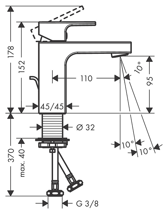 Смеситель для раковины Hansgrohe Vernis Shape 71561670 со сливным гарнитуром