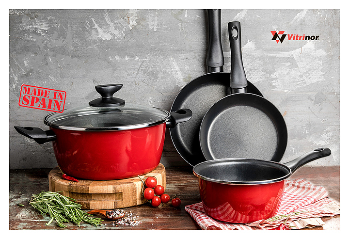 Сковорода-вок Vitrinor V Poivre Rouge 28 используется на предприятиях общественного питания и торговли, а также в домашних условиях для приготовления широкого спектра блюд на любых типах варочных поверхностей, включая индукционные. Модель оснащена эргономичной ручкой с отверстием для подвешивания. Изделие выполнено из стали c ферромагнитными свойствами с двухслойным антипригарным покрытием, не содержащим PFOA, внешнее покрытие - двухслойная стеклоэмаль, обожженная при температуре 820 °С, красного цвета, ручка - из бакелита. Особенности: