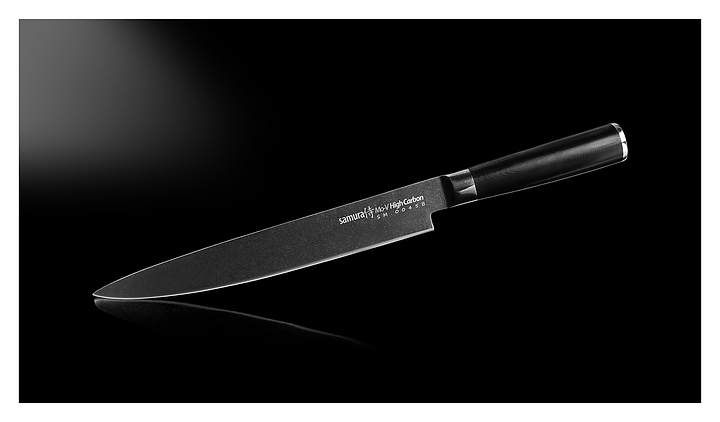Компания Samura, имеющая производство в Японии и Китае, выпускает кухонные ножи для предприятий общепита и торговли, частных домов и квартир. Изделия являются симбиозом японской ножевой традиции и европейской надежности. |