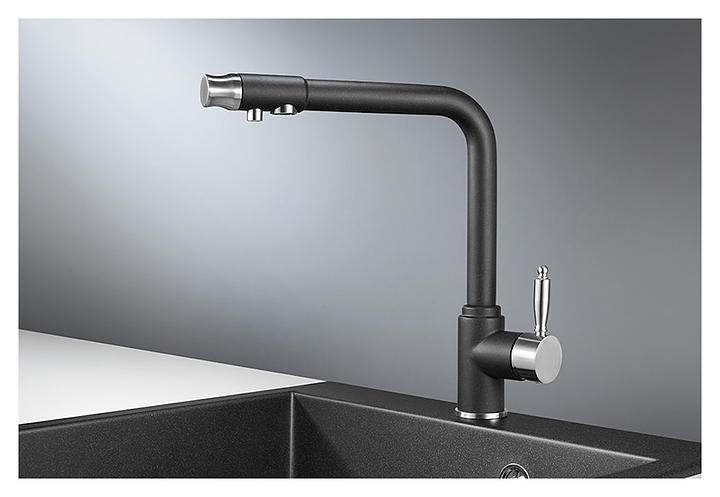 Смеситель для кухни Granula GR-2301 с краном для питьевой воды, черный
