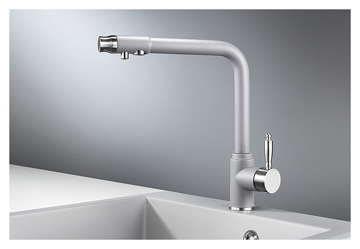 Смеситель для кухни Granula GR-2301 с краном для питьевой воды, алюминиум