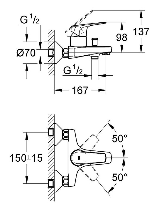 Смеситель для ванны и душа Grohe BauFlow 23601000
