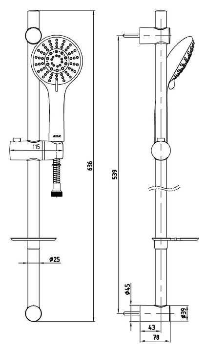 Душевой гарнитур E.C.A. Logica 102146027EX предназначен для подачи горячей и холодной воды в ванных помещениях. Модель отличается лёгкой очисткой от известковых отложений. Изделие выполнено из латуни, которая отличается прочностью, долговечностью и устойчивостью к перепадам температуры. Комплектация: