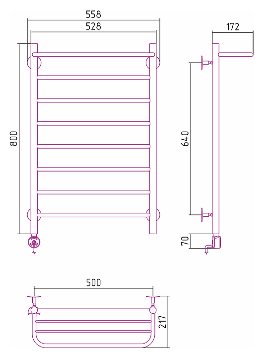 Электрический полотенцесушитель Стилье Формат 20 ТЛ предназначен для подогрева и сушки полотенец, а также для обогрева ванных комнат в квартирах, коттеджах и частных домах. Модель оснащена 7 перекладинами для удобного использования и полкой для размещения полотенец. Изделие выполнено из нержавеющей стали AISI 304 L, отличающейся прочностью, долговечностью и устойчивостью к перепадам температур. Особенности: