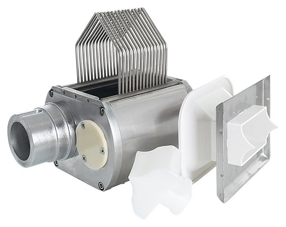 Насадка Foodatlas TK-12 Нарезка мяса (3.5 мм) используется совместно с мясорубками серии ТК-12 для нарезки мясного филе на слайсы определенной ширины на предприятиях общественного питания и торговли. Модель оснащена 19 острыми дисковыми ножами, направляющими и толкателем. Корпус и ножи выполнены из высококачественной нержавеющей стали, толкатель – из пластика, упаковка – картонная коробка. Особенности: