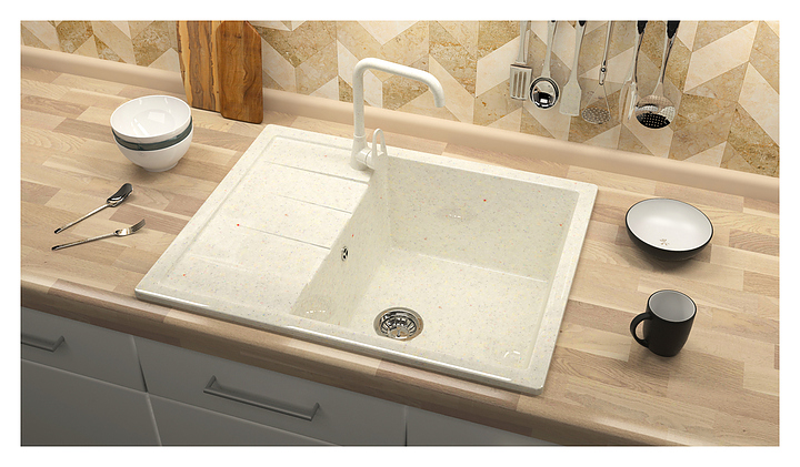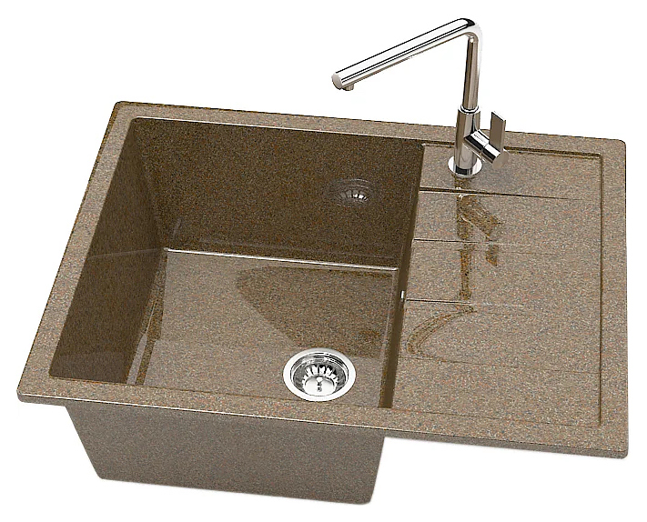 Мойка Marrbaxx Катрин Z151Q009 предназначена для установки в кухонных помещениях. Модель оснащена крылом, на котором удобно располагать посуду и другие бытовые принадлежности. Изделие выполнено из кварца, который отличается внешним видом, напоминающим натуральный камень, способностью поглощать шум воды, стойкостью к действию моющих средств, экологичностью и долговечностью. В комплект поставки входят сливная арматура, герметик и фреза. Смеситель в комплект поставки не входит и приобретается отдельно. Особенности: