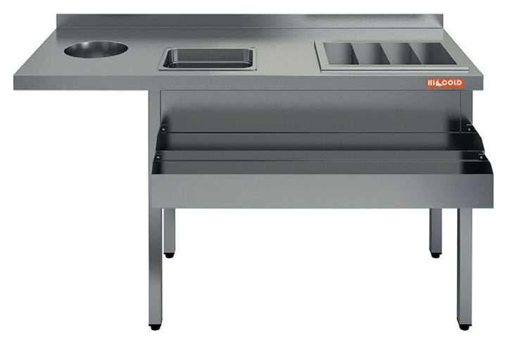 Барная станция HICOLD НКС-15/6БК предназначена для комплектации модульных барных стоек на предприятиях общественного питания и торговли. Модель оснащена столешницей с задним бортом и устойчивыми опорами. Корпус и столешница выполнены из высококачественной нержавеющей стали AISI 430, столешница усилена ребрами жесткости. Изделие поставляется в сборе. Комплектация: