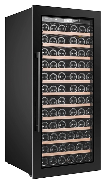 Винный шкаф Temptech Oslo OBI124SB предназначен для охлаждения, хранения при оптимальных условиях и демонстрации бутилированного вина различных сортов в барах, ресторанах, специализированных магазинах, подсобных складских помещениях, а также домашних условиях. Модель оснащена монотемпературной холодильной камерой с 11 выдвижными полками, распашной дверью на перенавешиваемых петлях, длинной вертикальной рукояткой и прозрачным обзорным остеклением. Корпус, рама двери и рукоятка выполнены из металла с антикоррозийным покрытием черного цвета, полки – из массива буковой древесины. Особенности: