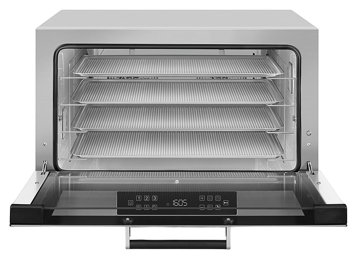 Конвекционная печь Smeg ALFA 420 E1HDS предназначена для выпечки хлебобулочных и кондитерских изделий, приготовления различных блюд и разогрева уже готовой продукциина предприятиях пищевой промышленности, общественного питания и торговли. Модель оснащена сенсорной панелью управления и принудительной вентиляцией, позволяющей равномерно распределить тепло в камере. Корпус и камера выполнены из нержавеющей стали, охлаждаемая дверца с двойным остеклением. Печь используется совместно с вытяжным зонтом SMEG K425C. Противни и гастроемкости в комплект поставки не входят. Рекомендуется дополнительно приобрести водоумягчитель и фильтр-систему для очистки и смягчения воды. Режимы приготовления: