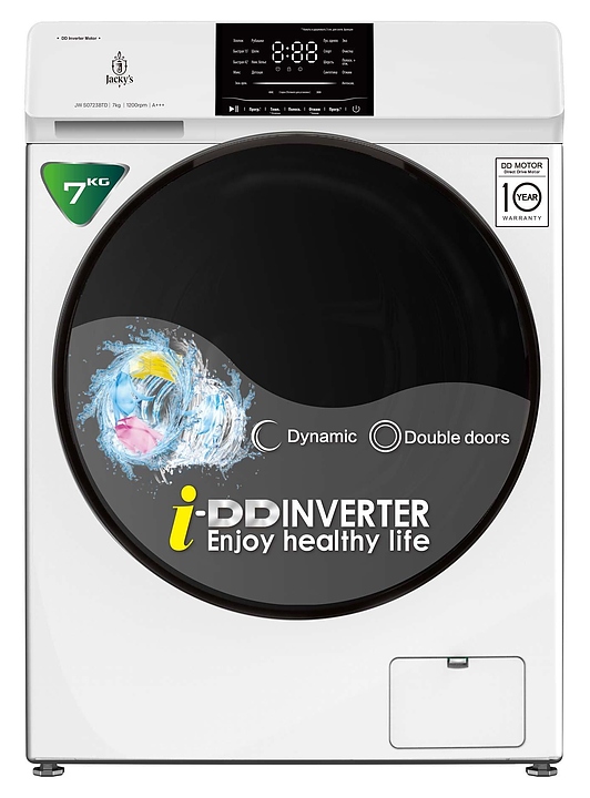 Стиральная машина Jacky's JW S0723BTD используется в квартирах и частных домах для стирки, полоскания и отжима белья, ткани и одежды. Модель оснащена инверторным двигателем, сенсорной панелью управления с LED дисплеем и регулируемыми ножками. Бак изготовлен из полипропилена, барабан - из нержавеющей стали. В комплект поставки входят шланг подачи воды, ключ для регулировки ножек и заглушки отверстий для болтов. Программы: