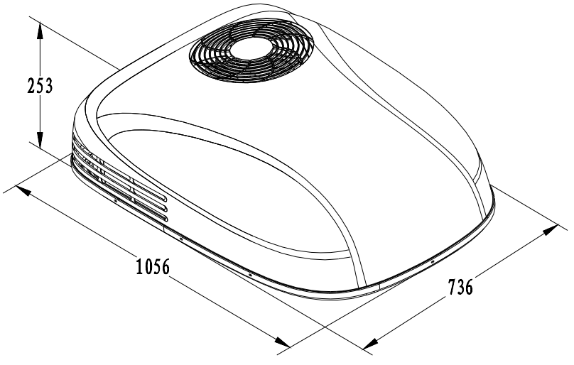 Автономный кондиционер MobileComfort MC2600 предназначен для создания комфортных климатических условий в кабине или салоне различного грузового транспорта: мобильных офисов и клиник, выездных лабораторий, спецтехники, автобусов, трамваев, катеров и яхт, а также автодомов и кемперов. Модель состоит из наружного блока и внутренней панели. Наружный блок имеет корпус обтекаемой формы с воздухозаборными отверстиями и защитной вентиляционной решеткой, внутренняя панель прямоугольной формы состоит из рамки с вентиляционными отверстиями и декоративной крышки с дисплеем индикации, пульт оснащен кнопочной клавиатурой и информативным дисплеем. Корпусы блоков выполнены из ударопрочного пластика белого цвета, дно корпуса наружного блока – из металла с антикоррозийным покрытием, корпус пульта и держатель – из пластика с серебристой поверхностью. В комплект поставки входят инфракрасный пульт дистанционного управления с настенным держателем и полный установочный набор: крепежная потолочная рамка, наборные по толщине крыши уплотнительные прокладки и комплект креплений. Особенности: