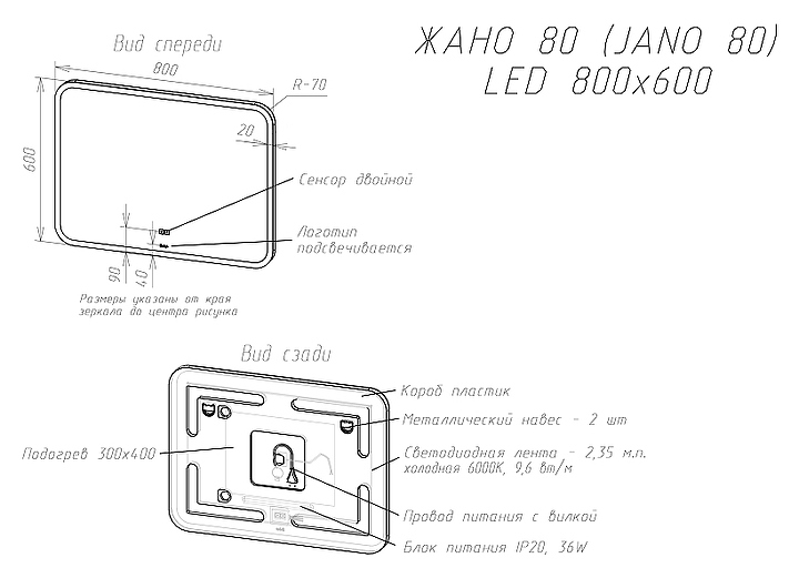 Зеркало Sintesi Jano 80 выполнено в современном стиле и отлично дополнит интерьер любой ванной комнаты. Благодаря подвесной конструкции модель не занимает много места, что позволяет экономить пространство в небольшой ванной комнате, а также облегчает уборку. Модель оснащена LED-подсветкой, функцией подогрева и сенсорным выключателем. Корпус изделия выполнен из ПВХ. В комплект поставки входят крепления для установки. Особенности: