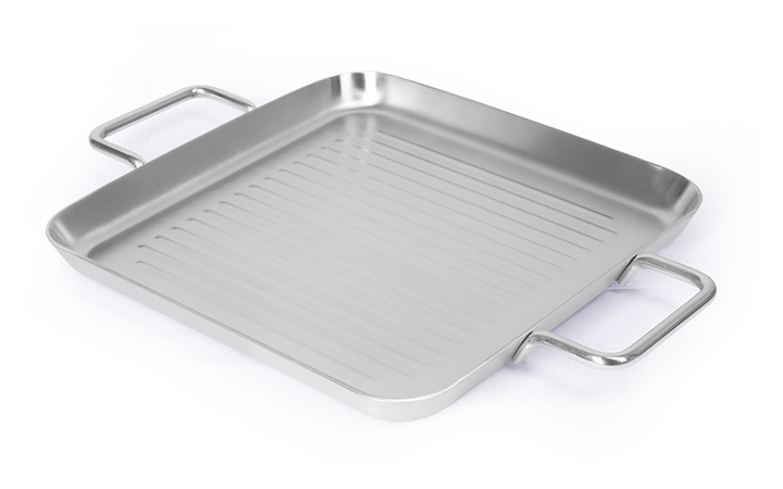 Квадратная сковорода-гриль Luxstahl 260х260 используется на предприятиях общественного питания для приготовления широкого спектра блюд. Модель оснащена 2 ручками с клепочным креплением. Изделие имеет трехслойное дно и стенки: внутренний и внешний слой корпуса выполнены из нержавеющей стали толщиной 0,6 мм, а между ними расположен слой алюминия толщиной 1,5 мм. Подходит для всех типов плит, включая индукционные. Особенности: