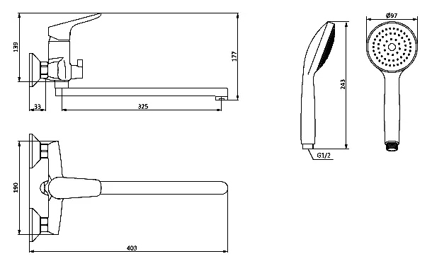 Смеситель для ванны с душем Damixa Origin Bit 779500000 хром