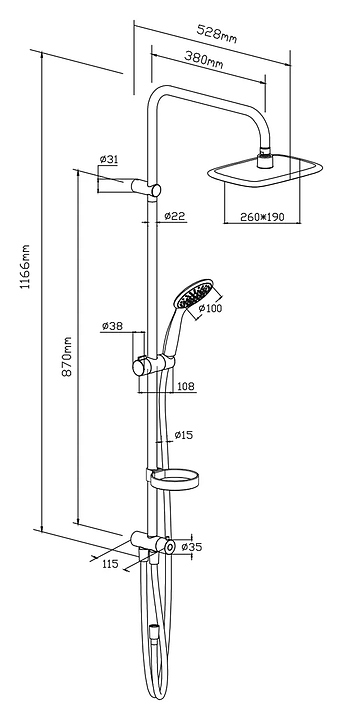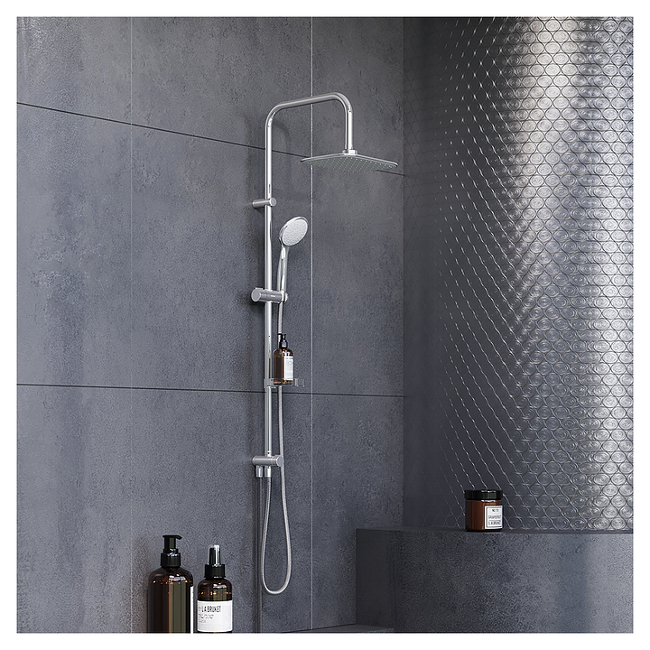 Душевая система Damixa Palace Evo 974200063 используется в ванных комнатах. Модель оснащена полочкой, прямоугольным тропическим верхним душем, душевой штангой, круглой ручной лейкой с душевым шлангом и держателем лейки. Изделие выполнено из латуни, отличающейся прочностью, долговечностью и устойчивостью к перепадам температур. В комплект поставки входят полочка, душевая штанга, верхний душ, ручной душ и шланг для ручного душа. Особенности: