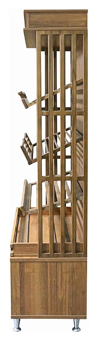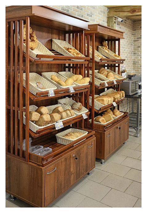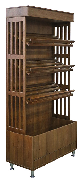 Стеллаж хлебный с тумбой Luxstahl прендназначен для демонстрации хлебной продукции в магазинах, супермаркетах, кофейнях, а также на предприятиях общественного питания и торговли. Модель оснащена 3 реечными полками, сплошнй стенкой, козырьком и тумбой. Модель выполнена из ЛДСП с элементами из фанеры, тонированные ЛКМ. Особенности:
