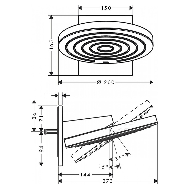 Верхний душ Hansgrohe HG Pulsify 24150700 260 предназначен для использования в ванных комнатах. Модель имеет душевую головку круглой формы и образует большую зону принятия душа. Известковый налет на силиконовых форсунках с легкостью удаляется благодаря технологии QuickClean, достаточно слегка потереть и структура струи снова идеальна. Душевой диск выполнен из пластика. В комплект поставки входят верхний душ и настенный разъем. Особенности: