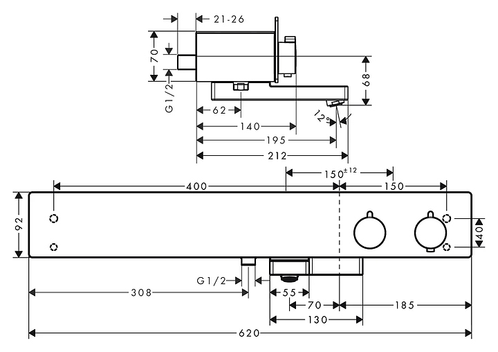 Смеситель для ванны термостатический Hansgrohe HG ShowerTablet 600 13109000 хром