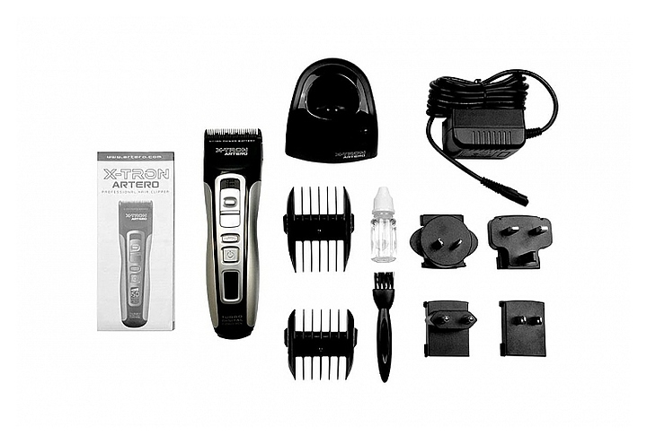 Машинка для стрижки волос Artero X-Tron используется в парикмахерских, барбершопах, салонах красоты и домашних условиях для окантовочных работ и придания формы волосам. Модель оснащена экраном, отображающим время и режим работы. Лезвие изготовлено из нержавеющей стали. В комплект поставки входят лезвие, 2 насадки (3/6 и 9/12 мм), щёточка для чистки и масло. Особенности: