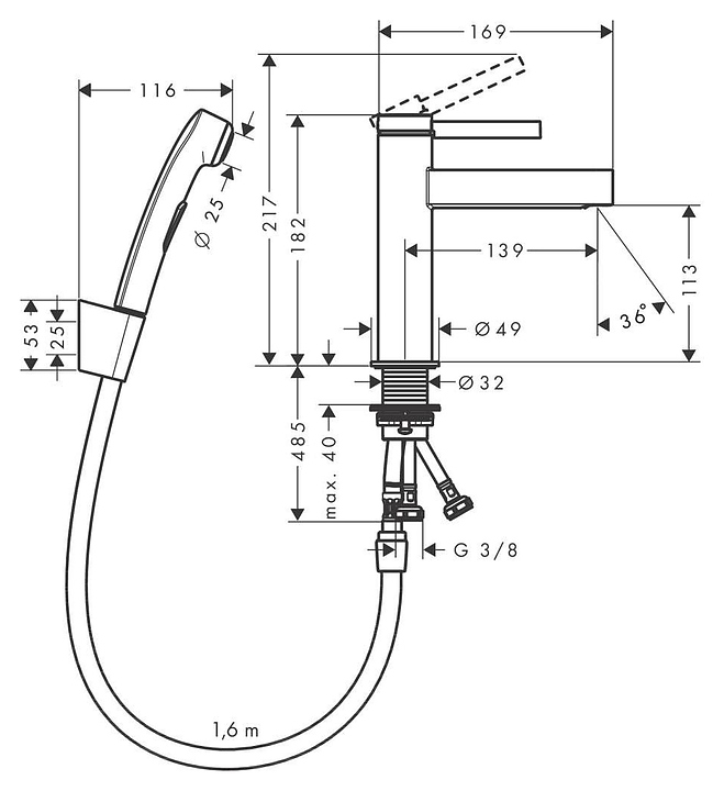 Смеситель для раковины с гигиеническим душем Hansgrohe HG Finoris 76210670 с донным клапаном, матовый черный