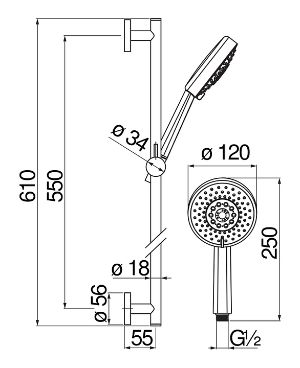 Душевой гарнитур NOBILI AD140/54CR предназначен для подачи горячей и холодной воды в ванных помещениях. Модель оснащена круглой лейкой и скользящим поворотным держателем. Дополнительные характеристики:
