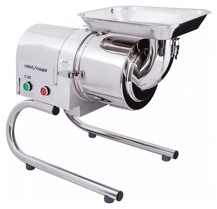 Протирочная машина Robot Coupe C 80 предназначена для приготовления пюре из ягод, мягких и печеных фруктов и овощей, соусов, супа гаспачо, мягкого мороженого, сорбетов, пастилы с добавлением натуральных ягодных и фруктовых пюре, быстрого процеживания супов-пюре и морсов на предприятиях общественного питания и торговли. В комплект поставки входит перфорированное цилиндрическое сито из нержавеющей стали с отверстием диаметром 1 мм. Особенности: