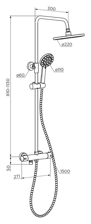 Стойка душевая с термостатом Dorff New plus D0710500 хром