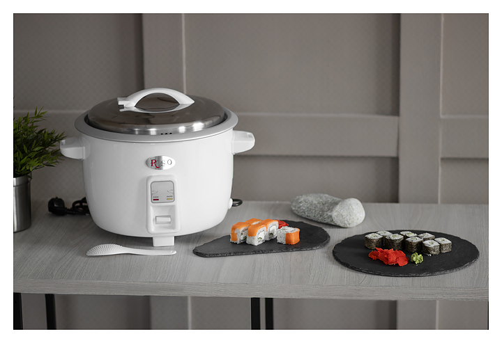Рисоварка Rosso ERC-10L используется на предприятиях общественного питания и торговли для приготовления, хранения и поддержания отваренного риса в разогретом виде. Модель оснащена панелью управления с выключателем и светодиодными индикаторами режимов работы, съемной емкостью для риса, крышкой с рукояткой и устойчивыми ножками. Особенности: