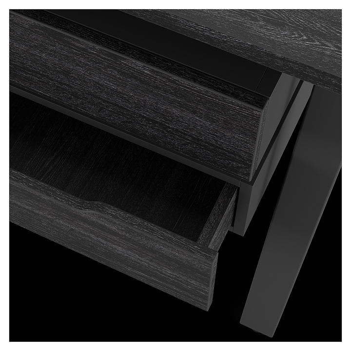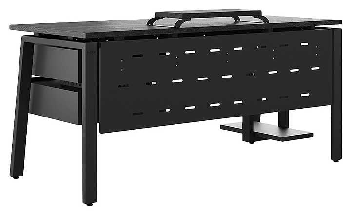 Офисный стол Кобор AB-160/80 black/glazed используется в офисных помещениях и кабинетах руководителей. Модель оснащена A-образными опорами со скошенными фронтальными сегментами. Каркас выполнен из металла, выкрашенного в цвет черный муар (RAL9005), столешница – из ламинированной древесно-стружечной плиты (ЛДСП) цвета черный дуб (H3178 ST37). Опции (заказываются отдельно):