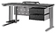 Офисный стол Кобор L1-140/70 aluminum/glazed используется в офисных помещениях и кабинетах руководителей. Модель оснащена L-образными опорами. Каркас выполнен из металла, выкрашенного в цвет алюминиевый металлик (RAL9006), столешница – из ламинированной древесно-стружечной плиты (ЛДСП) цвета черный дуб (H3178 ST37). Опции (заказываются отдельно):