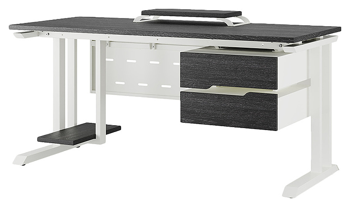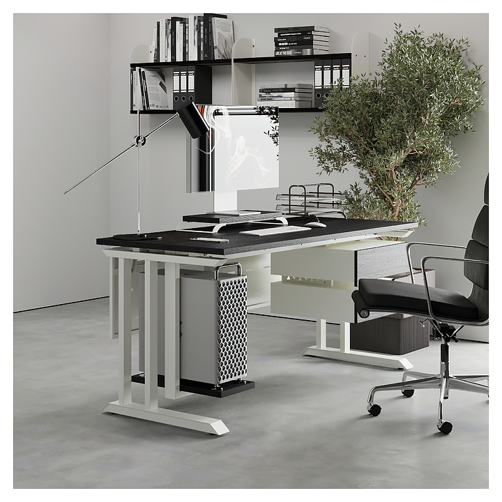 Офисный стол Кобор L1-120/70 white/glazed используется в офисных помещениях и кабинетах руководителей. Модель оснащена L-образными опорами. Каркас выполнен из металла, выкрашенного в цвет белый муар (RAL9016), столешница – из ламинированной древесно-стружечной плиты (ЛДСП) цвета черный дуб (H3178 ST37). Опции (заказываются отдельно):