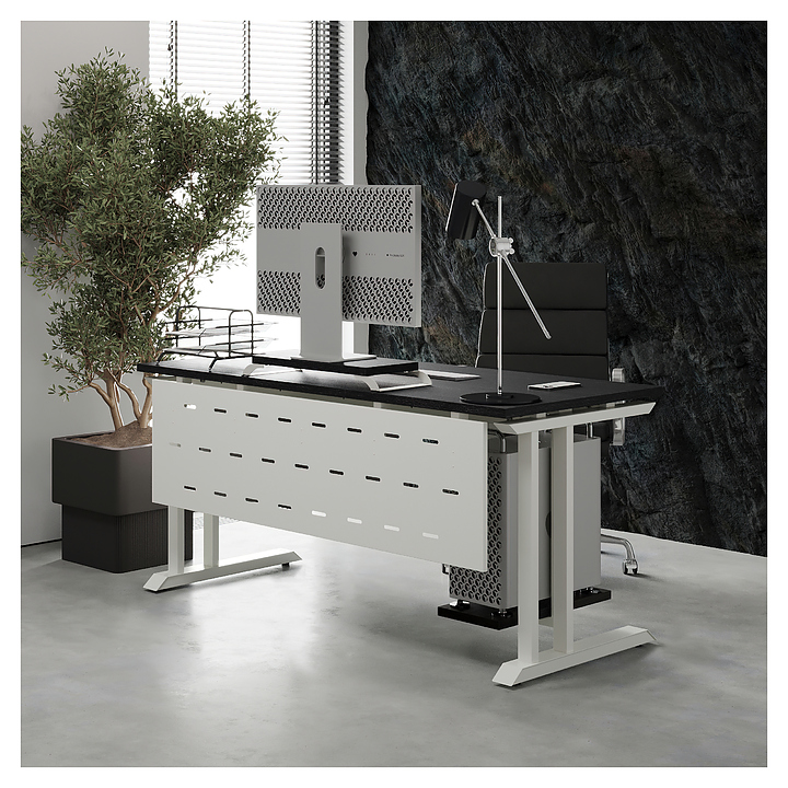 Офисный стол Кобор L1-180/80 white/glazed используется в офисных помещениях и кабинетах руководителей. Модель оснащена L-образными опорами. Каркас выполнен из металла, выкрашенного в цвет белый муар (RAL9016), столешница – из ламинированной древесно-стружечной плиты (ЛДСП) цвета черный дуб (H3178 ST37). Опции (заказываются отдельно):