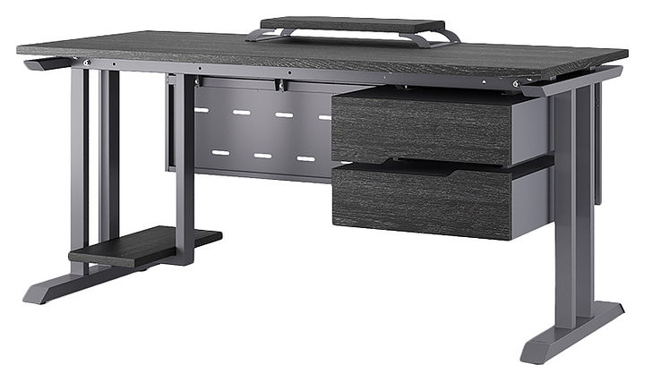 Офисный стол Кобор T-80/60 graphite/glazed используется в офисных помещениях и кабинетах руководителей. Модель оснащена T-образными опорами. Каркас выполнен из металла, выкрашенного в цвет графит муар (RAL7024), столешница – из ламинированной древесно-стружечной плиты (ЛДСП) цвета черный дуб (H3178 ST37). Опции (заказываются отдельно):
