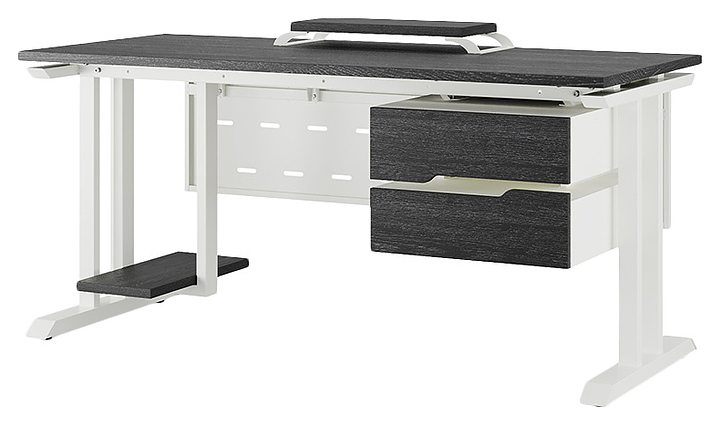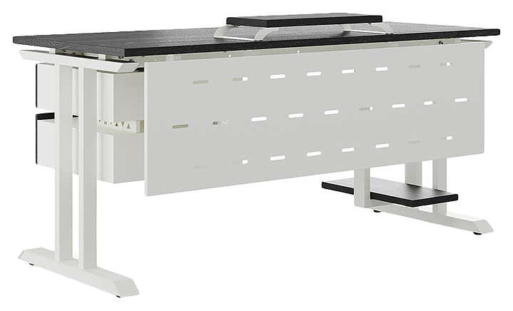 Офисный стол Кобор T-100/80 white/glazed используется в офисных помещениях и кабинетах руководителей. Модель оснащена T-образными опорами. Каркас выполнен из металла, выкрашенного в цвет белый муар (RAL9016), столешница – из ламинированной древесно-стружечной плиты (ЛДСП) цвета черный дуб (H3178 ST37). Опции (заказываются отдельно):