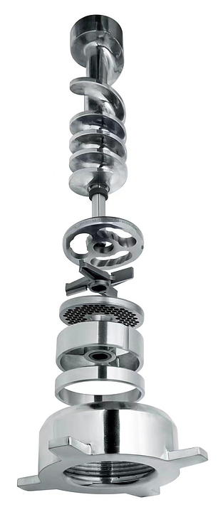 Мясорубка Hualian JR-130 используется на предприятиях пищевой промышленности, общественного питания и торговли для измельчения измельчения мяса различных видов (мясо птицы, свинина, говядина, индейка и т.д.) с целью получения однородной структуры фарша. Модель оснащена интуитивно понятной механической панелью управления. Корпус и мясорубочная система выполнены из углеродистой стали с антикоррозионным покрытием, снаружи - нержавеющая сталь марки SUS 304. В комплект поставки входят решётки с диаметром отверстий 6, 8 и 10 мм. Особенности: