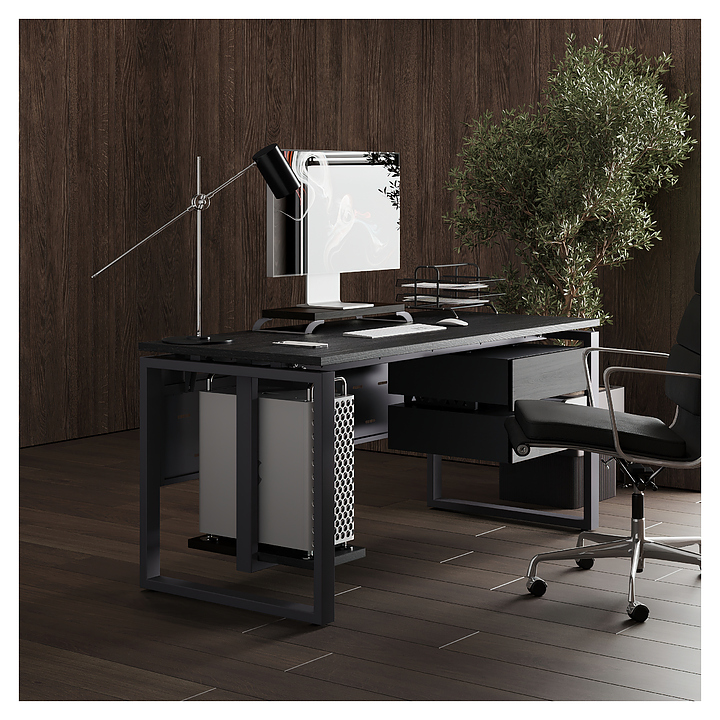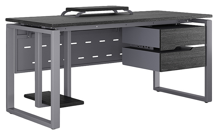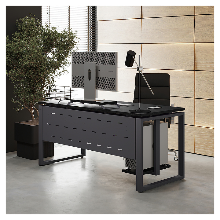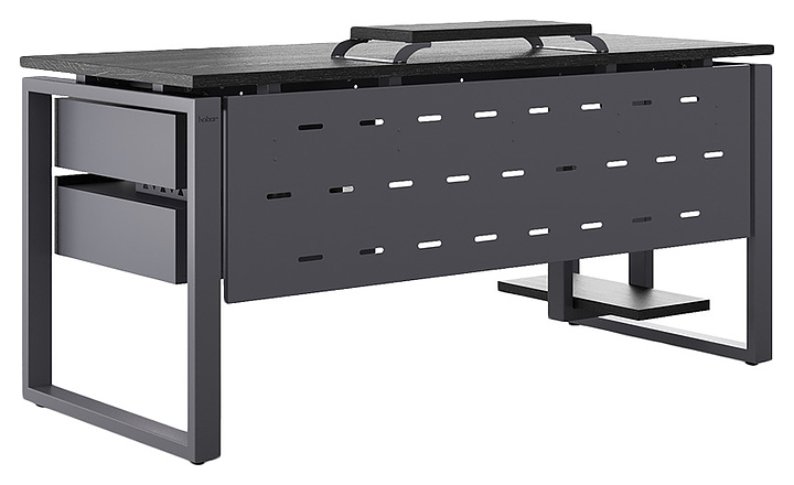 Офисный стол Кобор O1-80/70 graphite/glazed используется в офисных помещениях и кабинетах руководителей. Модель оснащена O-образными опорами. Каркас выполнен из металла, выкрашенного в цвет графит муар (RAL7024), столешница – из ламинированной древесно-стружечной плиты (ЛДСП) цвета черный дуб (H3178 ST37). Опции (заказываются отдельно):
