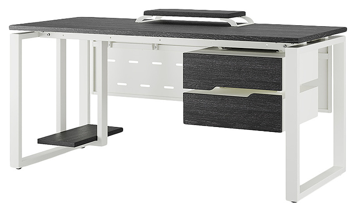 Офисный стол Кобор O1-100/80 white/glazed используется в офисных помещениях и кабинетах руководителей. Модель оснащена O-образными опорами. Каркас выполнен из металла, выкрашенного в цвет белый муар (RAL9016), столешница – из ламинированной древесно-стружечной плиты (ЛДСП) цвета черный дуб (H3178 ST37). Опции (заказываются отдельно):