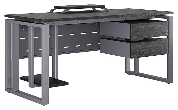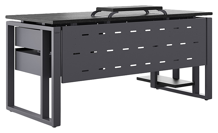 Офисный стол Кобор O2-80/70 graphite/glazed используется в офисных помещениях и кабинетах руководителей. Модель оснащена усиленными вертикальной балкой O-образными опорами. Каркас выполнен из металла, выкрашенного в цвет графит муар (RAL7024), столешница – из ламинированной древесно-стружечной плиты (ЛДСП) цвета черный дуб (H3178 ST37). Опции (заказываются отдельно):