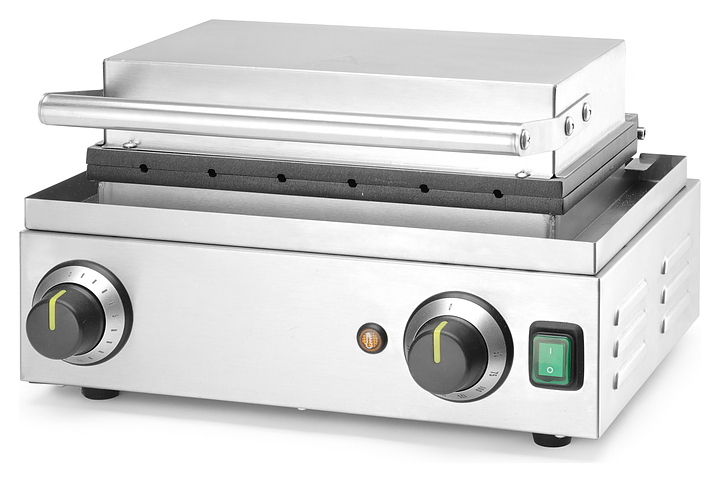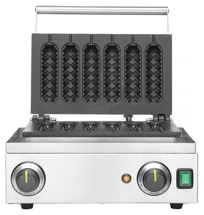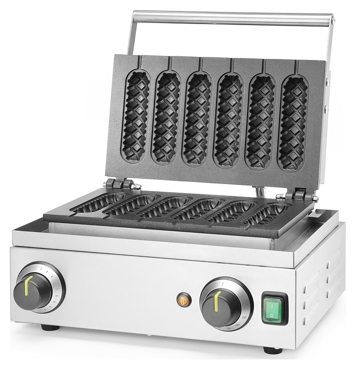 Аппарат для корн-догов HENDI 212189 используется на предприятиях общественного питания и торговли для приготовления корн-догов - фигурных вафель на палочке. При желании можно использовать различные начинки - сыр, бекон, запекать сосиски в вафле. Модель оснащена терморегулятором и электронным таймером на 15 мин. Корпус выполнен из нержавеющей стали 18/10, жарочная поверхность - из литого алюминия с антипригарным тефлоновым покрытием. Особенности: