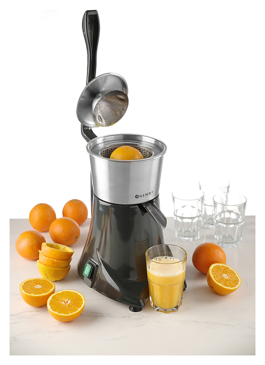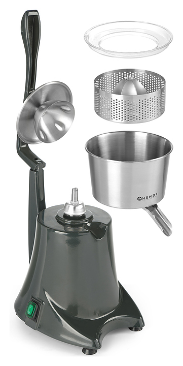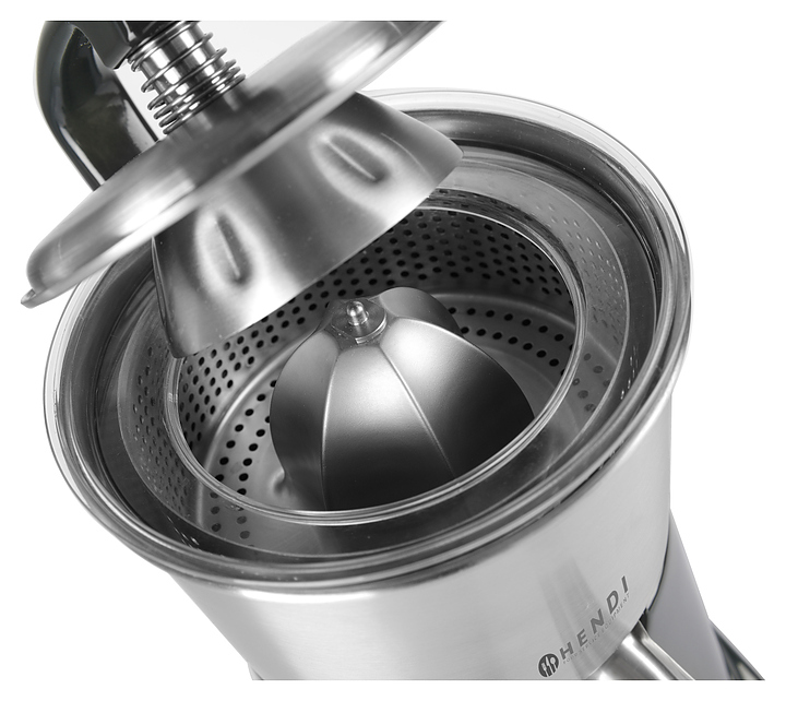 Соковыжималка HENDI 221099 используется в барах, кафе, ресторанах и других местах общественного питания с большой проходимостью, а также в домашних условиях для отжима и получения сока из твёрдых и мягких овощей и фруктов, зелени и трав. Модель оснащена съемной чашей, конусом, рычагом для простого и безопасноного управления в верхней части и устойчивыми ножками. Съемная чаша и конус выполнены из нержавеющей стали.
