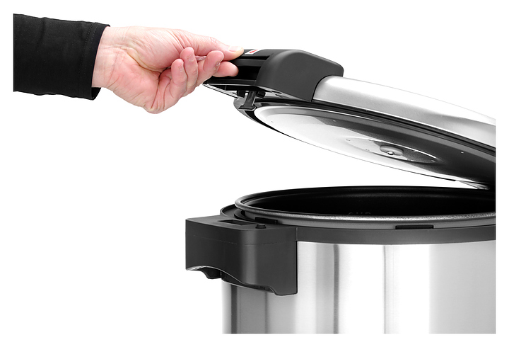 Рисоварка HENDI Profi Line 240403 используется на предприятиях общественного питания и торговли для приготовления, хранения и поддержания отваренного риса в разогретом виде. Модель оснащена съемным контейнером, крышкой на петлях с уплотнением и выпускным клапаном и устойчивыми ножками. Корпус и крышка выполнены из нержавеющей стали, контейнер - из алюминия с антипригарным покрытием, крыш В комплект поставки входят мерный стакан для риса, ложка и силиконовая антипригарная накладка. Особенности: