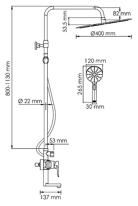 Душевая система со смесителем Wasserkraft A166.117.127.087.CH хром