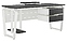 Офисный стол Кобор TB-100/80 white/glazed используется в офисных помещениях и кабинетах руководителей. Модель оснащена опорами в форме обратной трапеции со скошенными верхними углами. Каркас выполнен из металла, выкрашенного в цвет белый муар (RAL9016), столешница – из ламинированной древесно-стружечной плиты (ЛДСП) цвета черный дуб (H3178 ST37). Опции (заказываются отдельно):