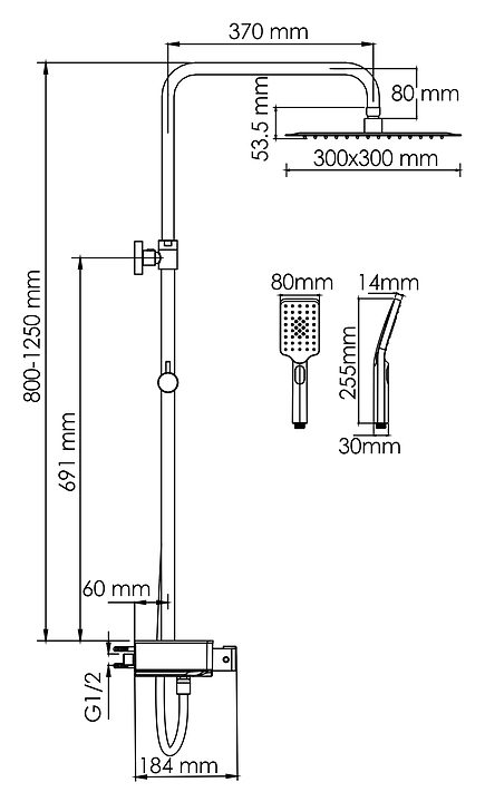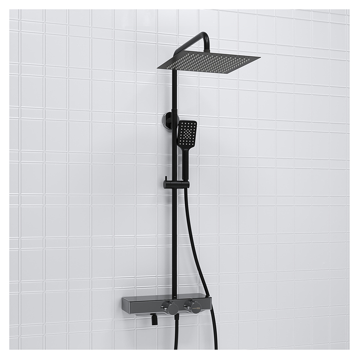Душевая система с термостатическим смесителем Wasserkraft A114.162.130.CB Thermo хром, черный soft-touch