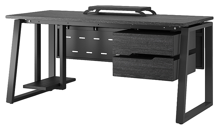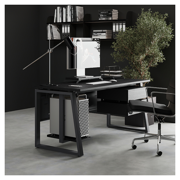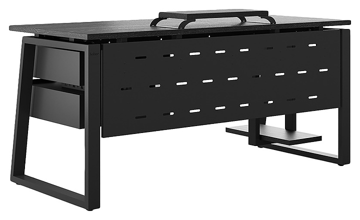 Офисный стол Кобор TS1-80/70 black/glazed используется в офисных помещениях и кабинетах руководителей. Модель оснащена опорами в форме наклонной трапеции. Каркас выполнен из металла, выкрашенного в цвет черный муар (RAL9005), столешница – из ламинированной древесно-стружечной плиты (ЛДСП) цвета черный дуб (H3178 ST37). Опции (заказываются отдельно):